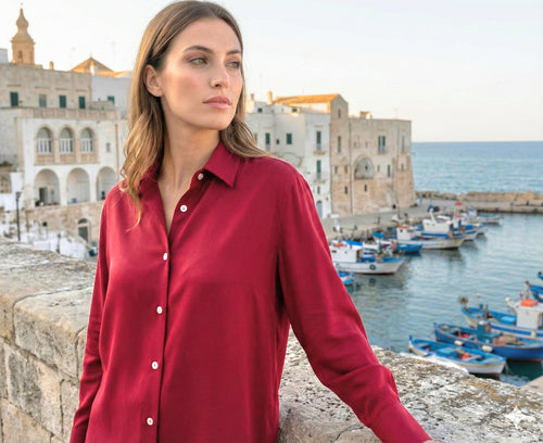 Camicia Rossa da Donna Camicione Donna tessuto naturale traspirante e leggero in morbida viscosa alta qualità Camicia in fibra naturale viscosa Made in Italy