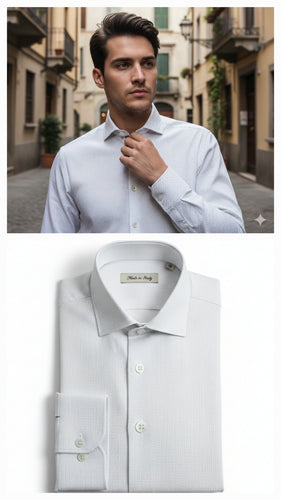 Camicia Uomo Bianca Elegante tessuto alta qualità puro cotone titolo 100 fil coupe Made in Italy