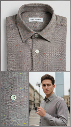 Camicia Uomo flanella chevron grigio vinaccia fantasia spigatino bottonato puro cotone 100% Made in Italy
