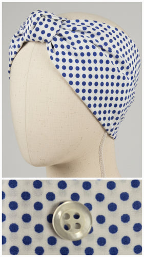 Turbante blu a pois cotone fantasia Made in Italy Fascia Capelli Hairband headband