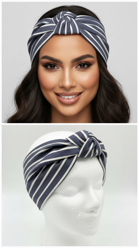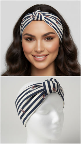 Turbante Rigato blu motoscafo fantasia cotone Fascia Capelli Made in Italy Hairband headband
