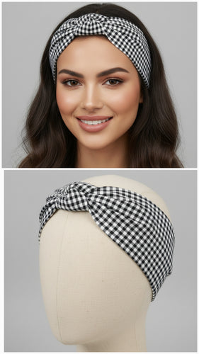 Turbante a quadretti blu in cotone fantasia Made in Italy Fascia Capelli Hairband headband