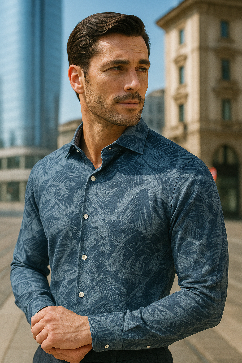 Realizzata in Italia con tessuto in morbido cotone puro e fantasia denim, questa camicia blu è un connubio di alta qualità e design italiano. Perfetta per ogni occasione grazie alla sua versatilità, assicura un comfort duraturo e uno stile impeccabile. Aggiungi un tocco di classe e originalità al tuo guardaroba con questa camicia made in Italy.