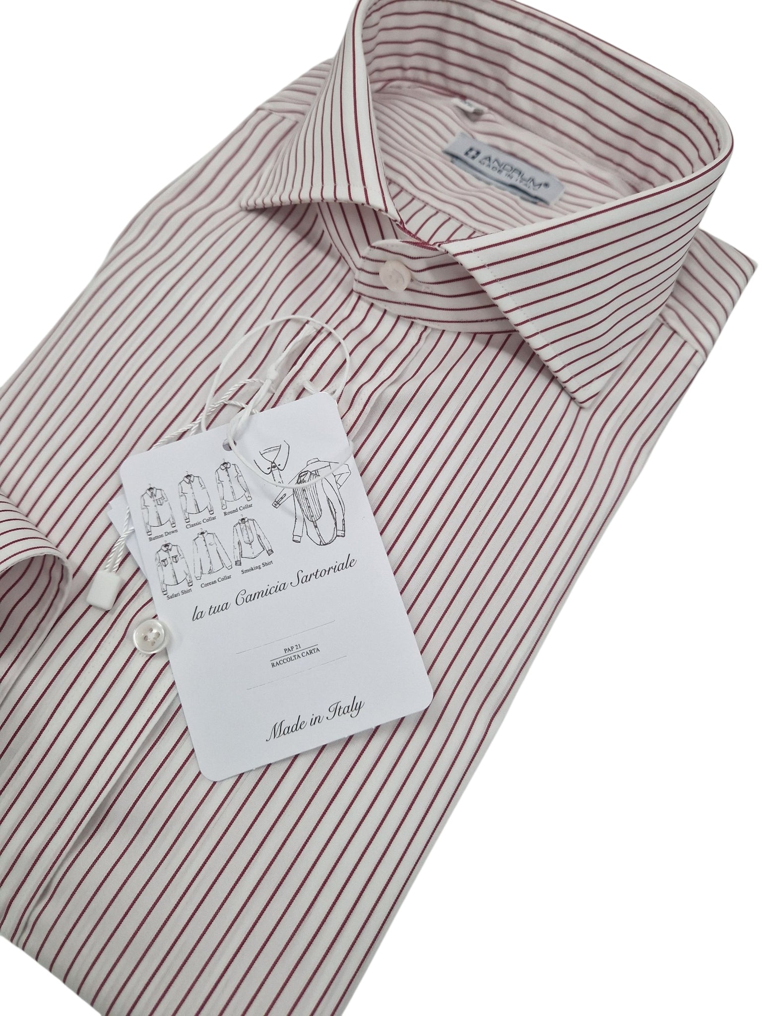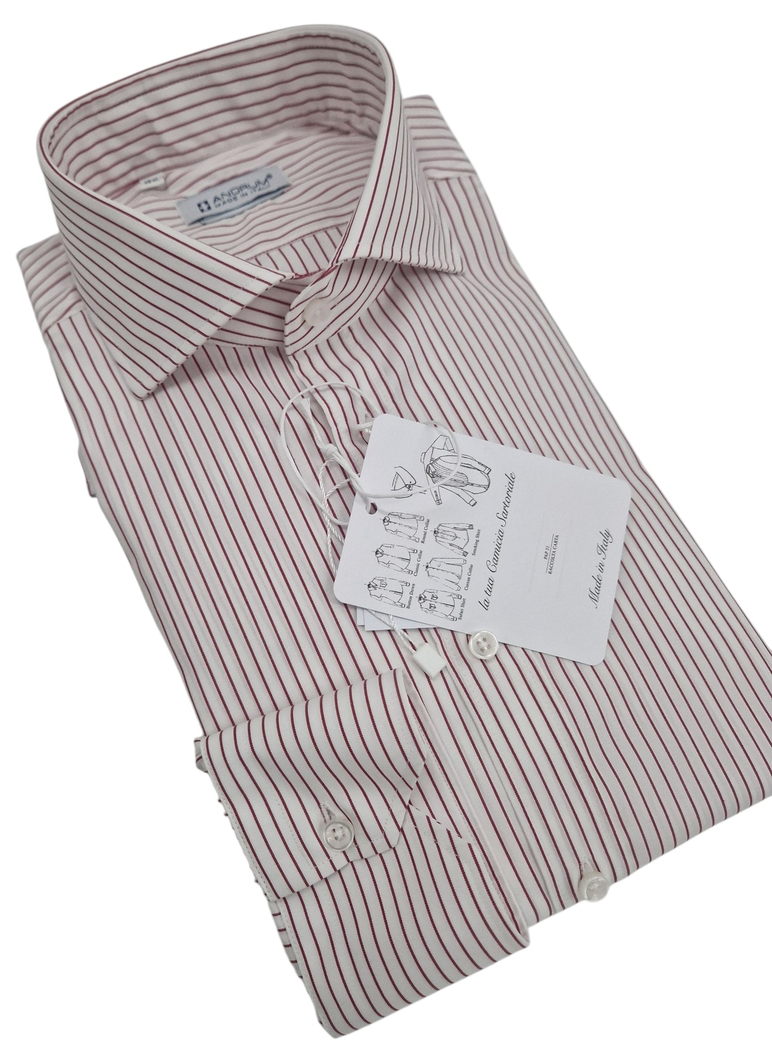 Camicia Rigata bacchettino rosso bordeuax alta qualità titolo 100 righino rosso puro cotone Made in Italy