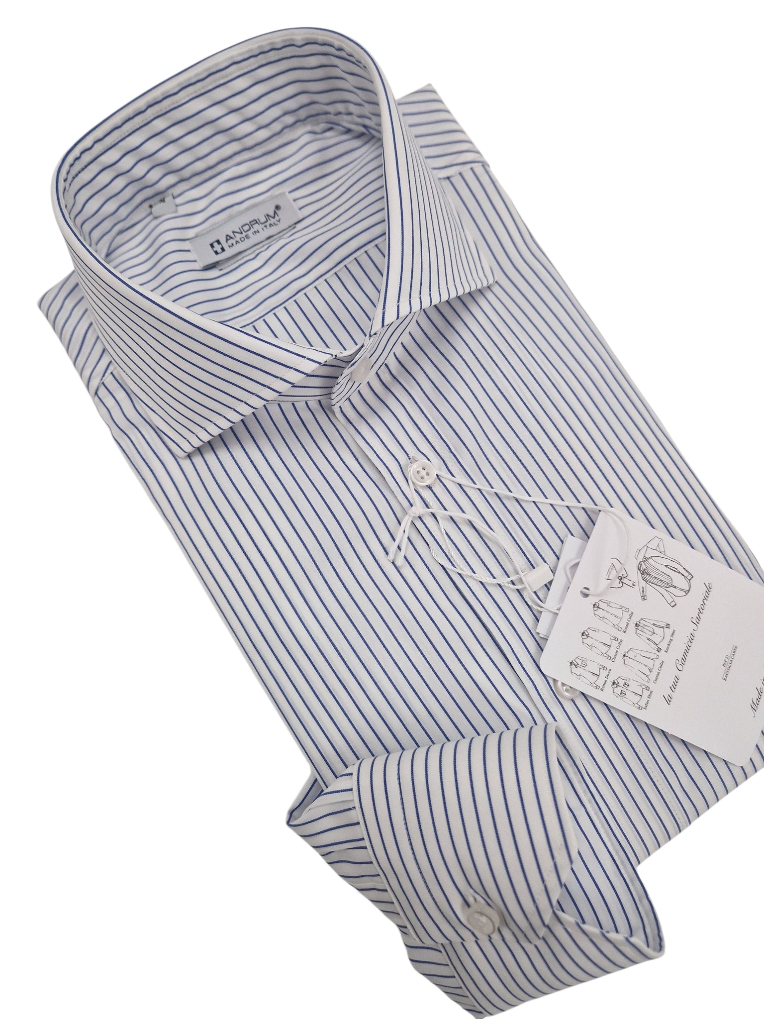 Realizzata in Italia con cotone di alta qualità, questa camicia uomo rigata azzurra è una scelta elegante per qualsiasi occasione. Con il suo titolo di 100 e il righino azzurro blu, offre un look sofisticato e professionale. Perfetta per chi vuole distinguersi con stile. -