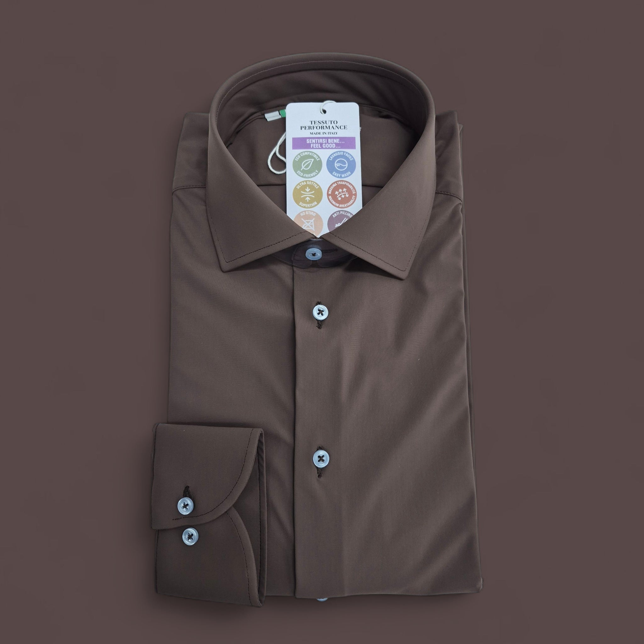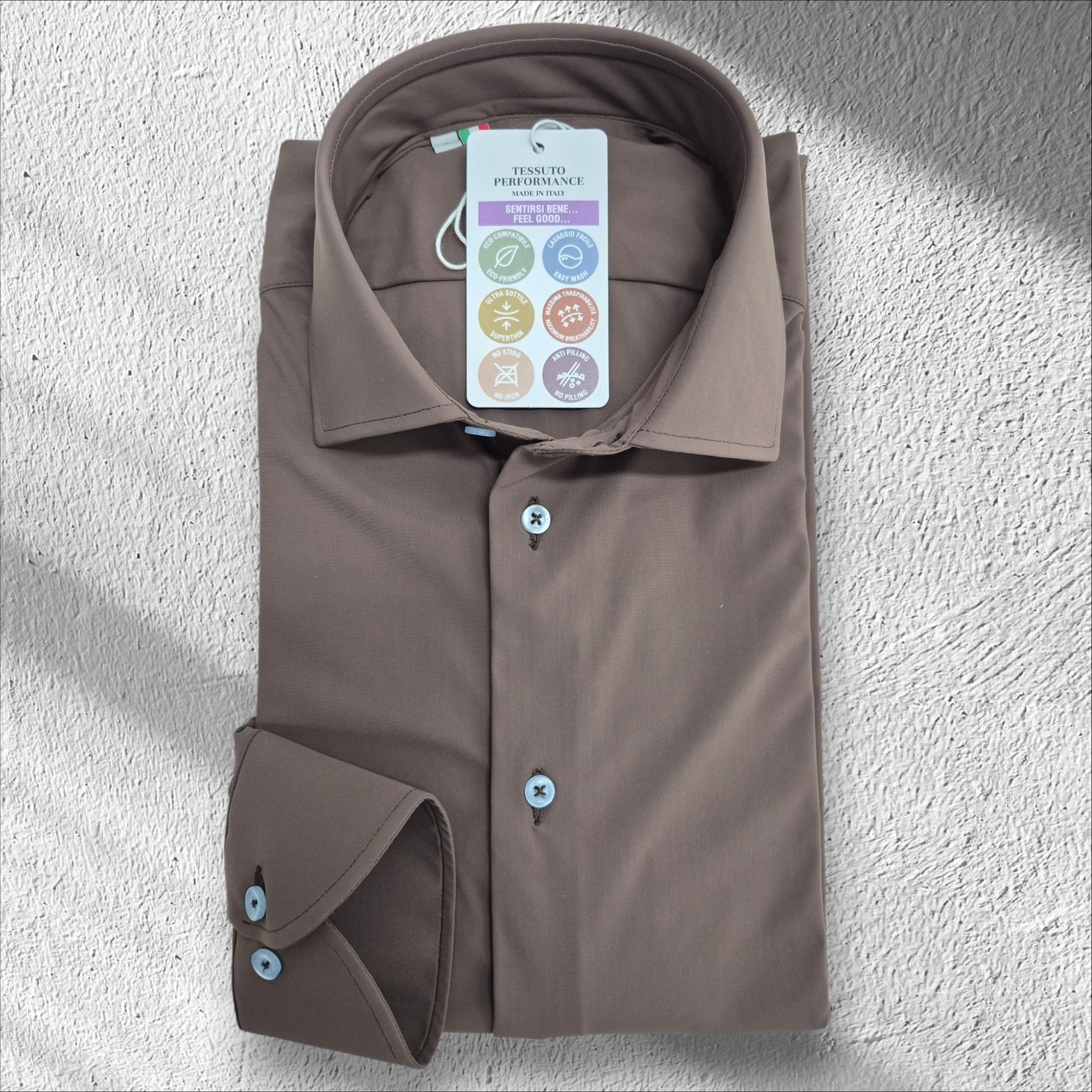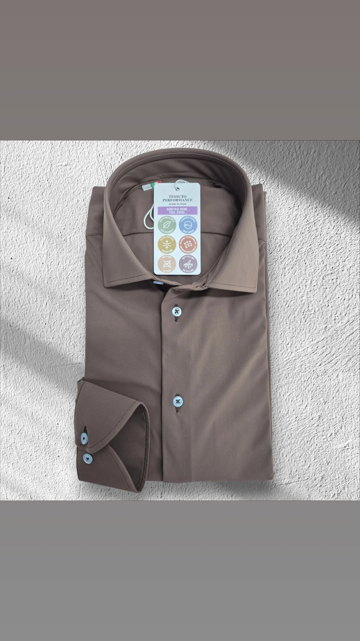 La nostra camicia testa di moro è stata realizzata in Italia con cura e attenzione per garantire un prodotto di massima qualità. Grazie alla tecnologia PERFORMANCE stretch, non avrete più la fastidiosa presenza di pieghe o aloni di sudore mentre la speciale finitura anti-stiro vi permette di avere sempre un look impeccabile, senza bisogno di stirare. Inoltre, la massima traspirabilità vi assicura comfort e freschezza durante tutta la giornata.