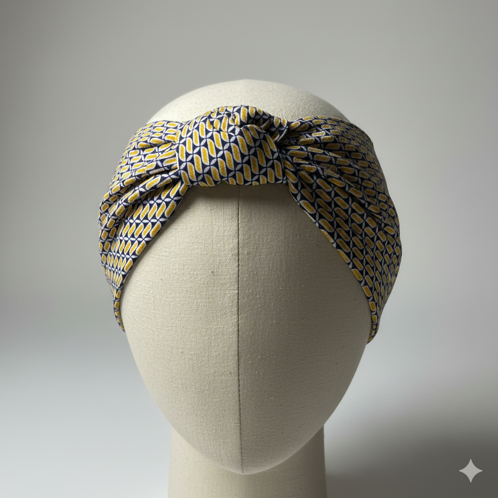 Turbante in cotone fantasia giallo blu Made in Italy Fascia Capelli Hairband headband