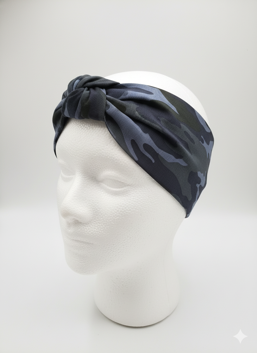 Turbante camouflage blu mimetico in cotone anallergico Fascia Capelli Made in Italy Hairband headband