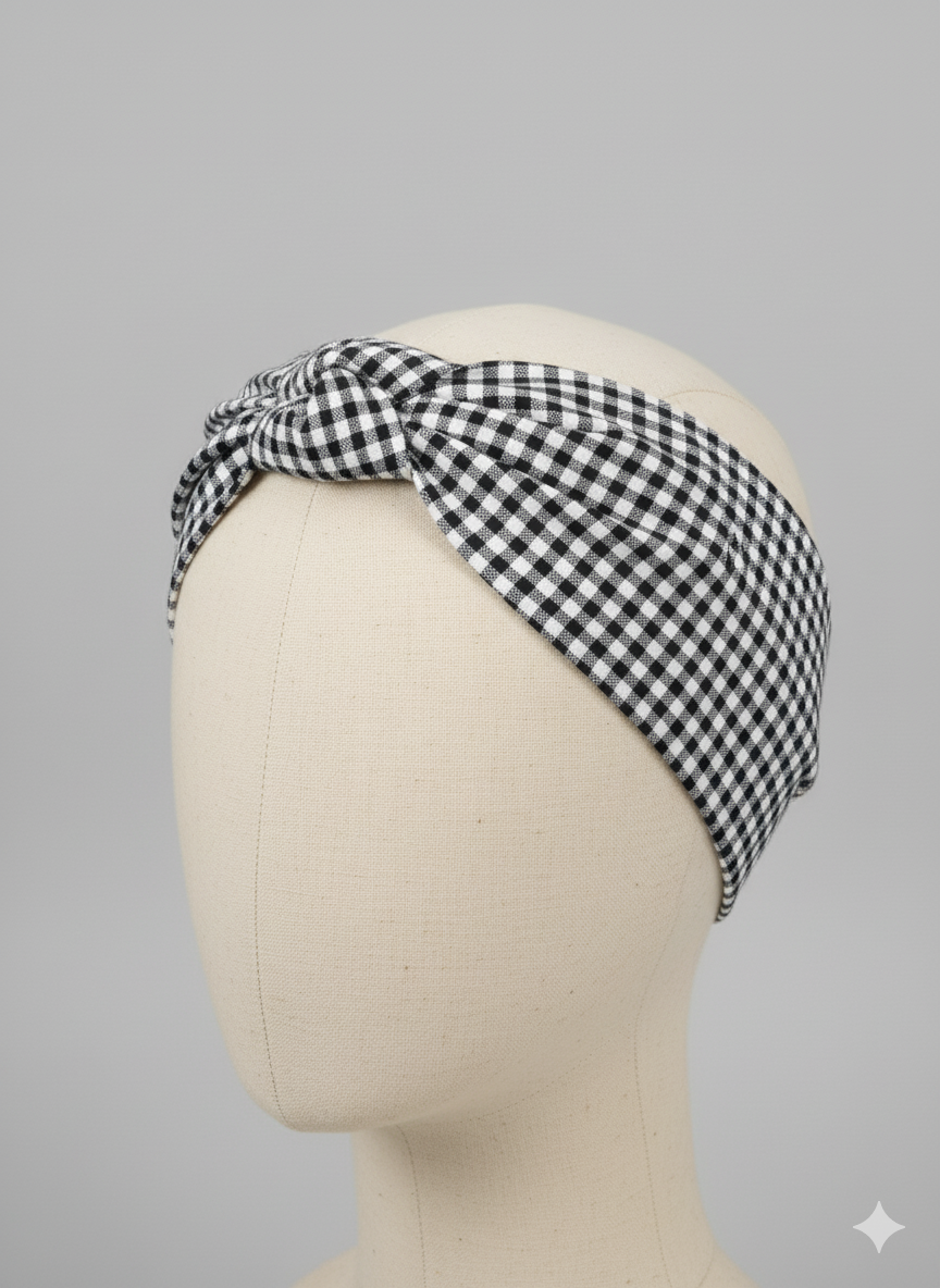 Turbante a quadretti blu in cotone fantasia Made in Italy Fascia Capelli Hairband headband