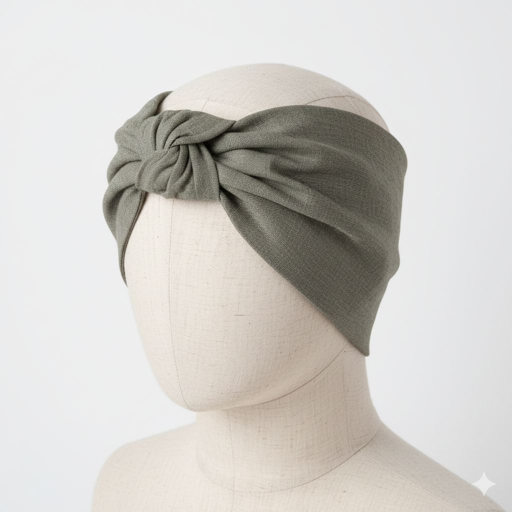 Turbante in cotone lino verdone cachi Fascia Capelli Made in Italy Hairband headband