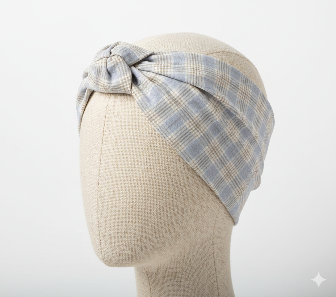 Turbante Principe di Galles Chiaro fantasia madras scozzese in cotone anallergico Fascia Capelli Made in Italy Hairband headband